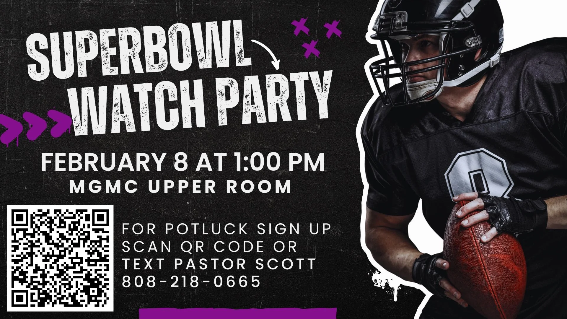 This will be a potluck-style gathering, so please scan the QR code on the flyer to sign up or text Pastor Scott to let us know what you’ll be bringing.